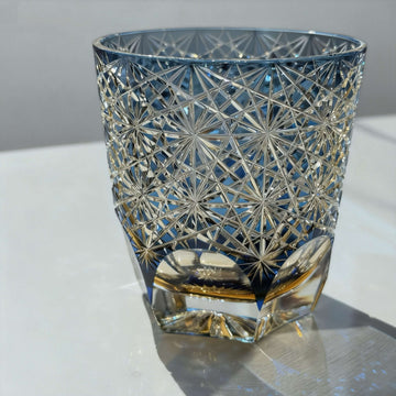 Hand-cut by Edo Kiriko artisans, this whiskey glass features a striking blue-amber gradient paired with...