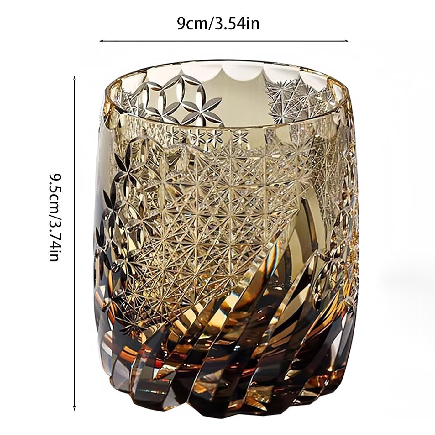 Celebrate timeless artistry with the “Fuuka Setsugetsu”Edo Kiriko whiskey glass — a symbol of nature’s fleeting beauty captured in crystal. Hand-carved in a warm amber-brown tone, this glass reflects the elegance of Japanese aesthetics, where every cut tells a story of movement, serenity, and harmony.