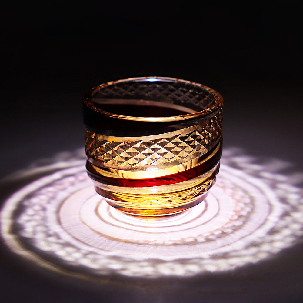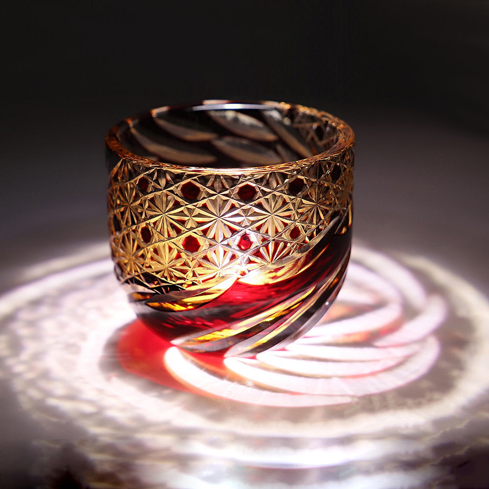 Edo Kiriko Handcrafted Red-Amber Crystal Sake Glass